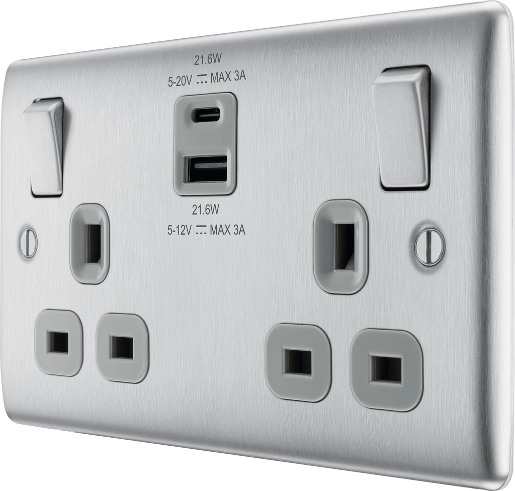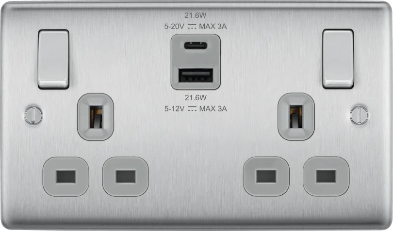 BG NBS22UAC22G Double switched single pole, with USB A + C (22W)