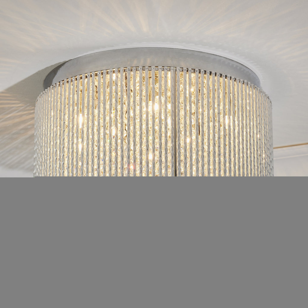 - Prod Description: The perfect opulent ceiling flush, create striking light patterns with an intricate mix of high quality crystals housed within decorative twisted polished chrome rods, the perfect centrepiece for the most loved rooms of your home.