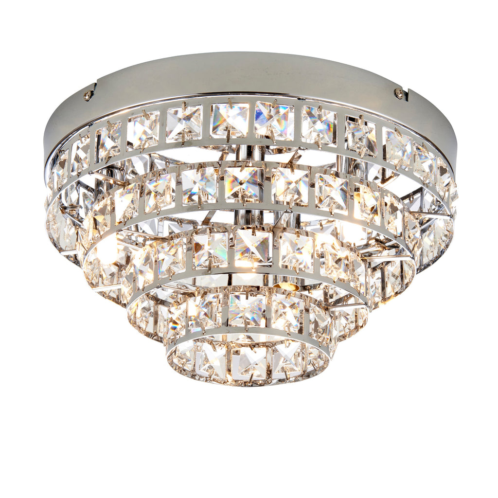- Prod Description: 4 light semi flush ceiling fitting, finished in polished chrome with glass faceted beads. Dimmable, suitable for use with LED lamps and ideal for fitting to low ceilings