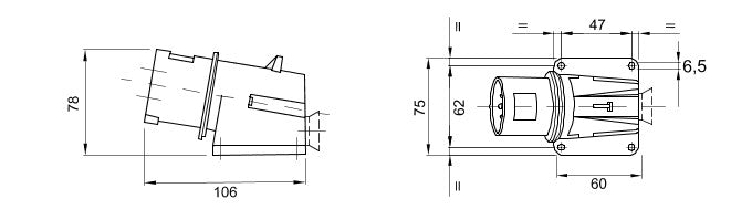 Gewiss GW60401 2P+E, 16A, 90° Angled Surface Mounting Inlet 100-130V, 4H