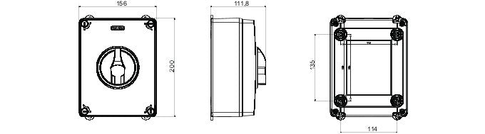 - Outer dim. LxHxD (mm): 156x200x95