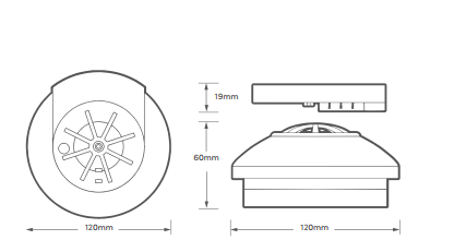 - Heat Sensor: Thermistor Class A1 detection – Alarm is triggered at 60oC