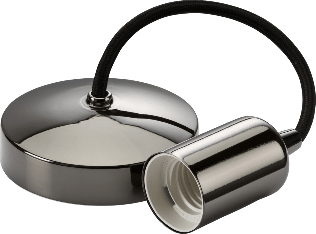 - Contemporary style metal pendant lamp holder. Pre-wired to reduce time on installation. - T2 rated 80W Incandescent /LED - E27 lamp base - Fixed drop - Pre-wired - Terminal capacity: 2 x 1.5mm ² - Certified to BS EN 60598-2-1, BS EN 60598-1