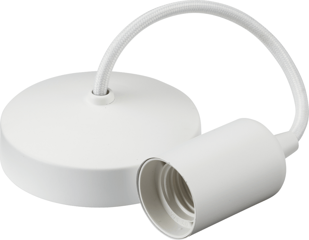 - Contemporary style metal pendant lamp holder. Pre-wired to reduce time on installation. - T2 rated 80W Incandescent /LED - E27 lamp base - Fixed drop - Pre-wired - Terminal capacity: 2 x 1.5mm ² - Certified to BS EN 60598-2-1, BS EN 60598-1