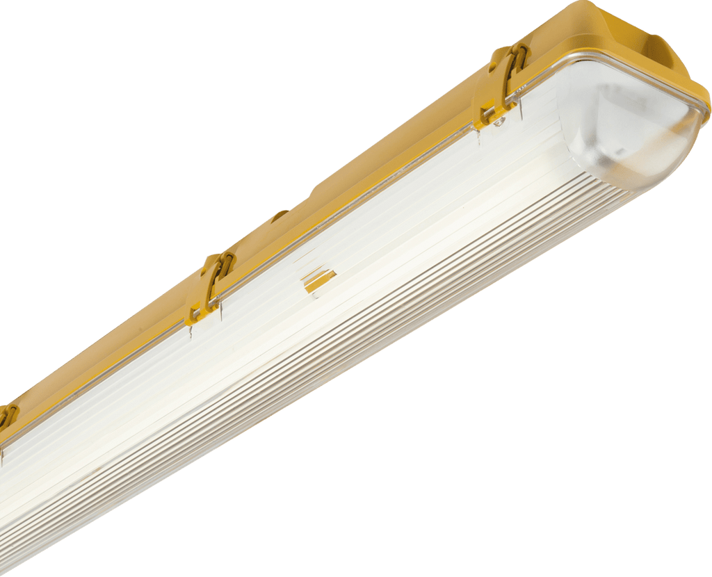 - 110V IP65 1x58W 5ft Single High Frequency Non-Corrosive Fluorescent Fitting with Emergency. - Brackets for surface mounting - 3 hour emergency - Supplied with 12 x fixing clips - Polycarbonate base and diffuser - Push-fit terminals Compatible with 1x58W 5ft T8 lamp (not supplied).