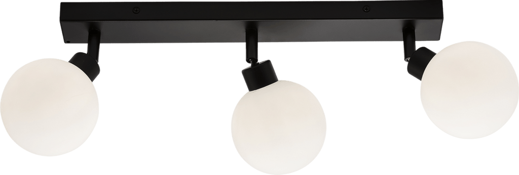 - Triple bar IP44 G9 spotlight, in a smooth matt black finish, with opal glass orbs. The frosted glass gives a gentle and even diffused light output, adding a stunning feature for any room. Also available in single and triple spotlight, in matt black and polished chrome finish - Adjustable head 350 ° rotation, 90 ° tilt - Suitable for ceiling and wall mounting - Opal glass orbs - Dimmable subject to lamp 3 x 25W. max G9 (lamps not included)
