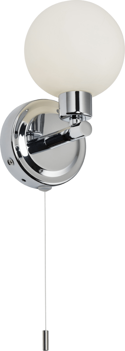 - Single IP44 G9 wall light, in polished chrome finish, with a opal glass orb. The frosted glass gives a gentle and even diffused light output, making a great addition to any bathroom. Also available in triple and triple bar spotlight, in polished chrome and matt black finish - Opal glass orb - Pull cord on/off switch - Dimmable subject to lamp 25W. max G9 (lamp not included)
