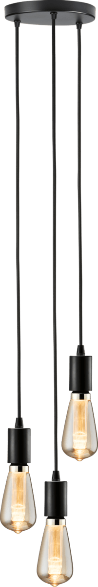 - 3 light cluster ceiling pendant with contemporary style lamp holders, in a matt black finish. Each drop has 1.8m black fabric flex cable, where height can be adjusted independently. Fitting is stylish and complement well with decorative filaments lamps, to create different look and style within a roomset. - Each lamp has 1.8m cable - Adjustable cable length 3 x E27 lamps (40W max., not included)