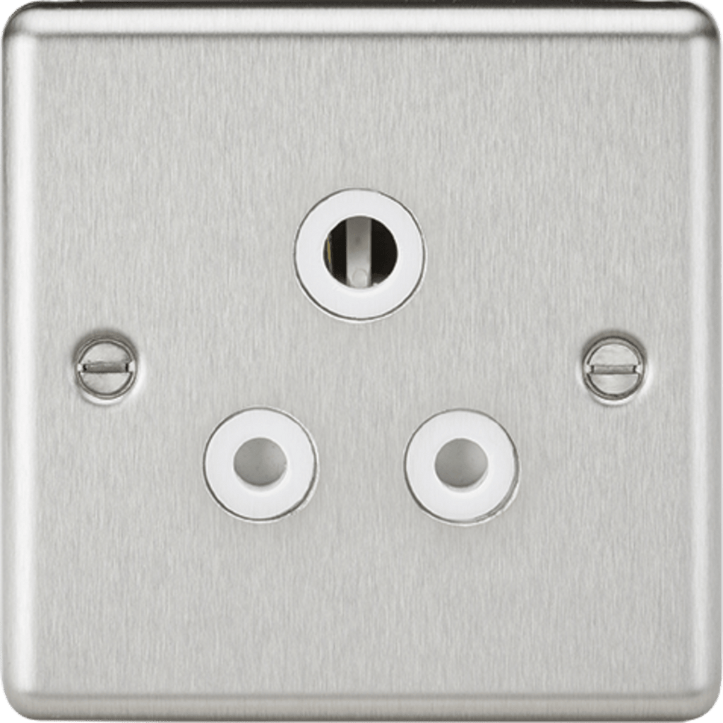- Provides a desirable decorative touch to any home, contemporary rounded edge metal design. Ideal for use in custom lighting solutions. - 5A round pin socket - Unswitched - Rounded Edge design with built in gasket - Certified to BS 546 - Minimum mounting box depth 25mm