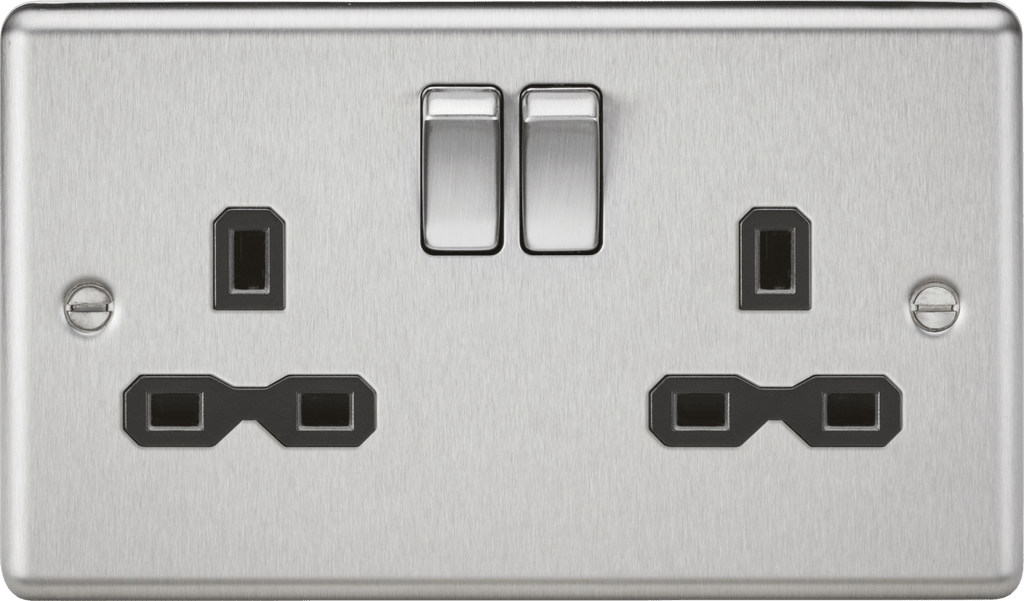 Knightsbridge MLA CL9BC 13A 2G DP Switched Socket with Black Insert - Rounded Edge Brushed Chrome