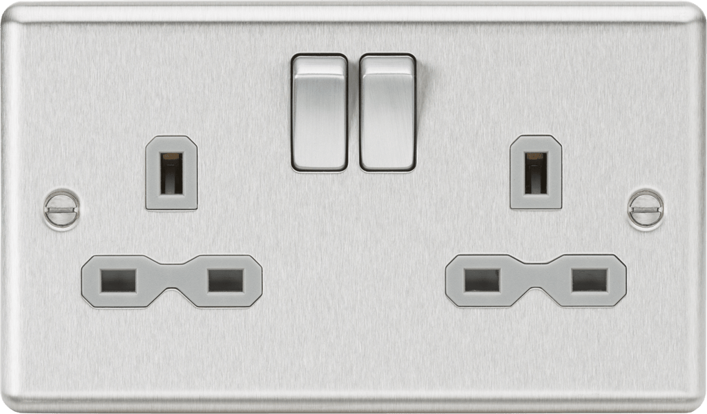 Knightsbridge MLA CL9BCG 13A 2G DP Switched Socket with Grey Insert - Rounded Edge Brushed Chrome