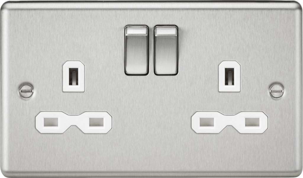 Knightsbridge MLA CL9BCW 13A 2G DP Switched Socket with White Insert - Rounded Edge Brushed Chrome
