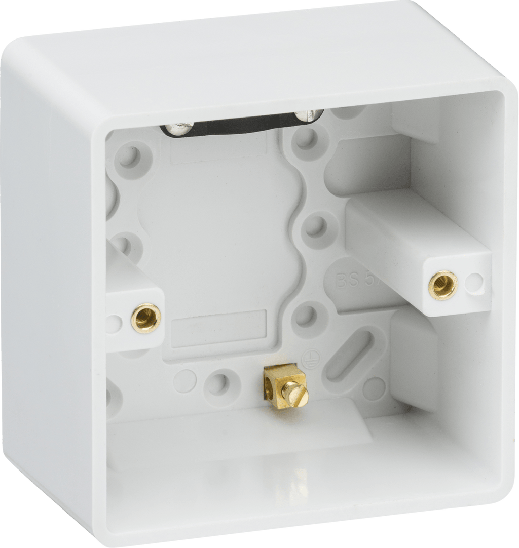 Knightsbridge MLA CU1610 Curved Edge Single 47mm Pattress Box with Earth Terminal and Cable Strain Relief