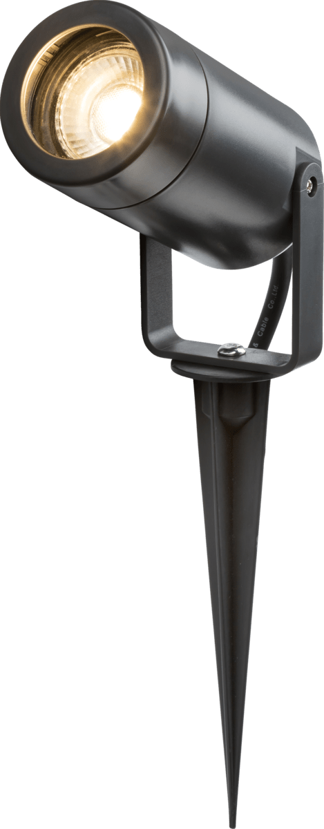 - EAMON IP65, polycarbonate construction, GU10 spike light in anthracite finish. Contemporary and compact design, the fitting also offers corrosion resistant properties. EAMON range consist of matching fixed Single and Up/Down Wall lights, in 4 colour options. Weather resistant, low maintenance and ideal for use in coastal areas. - Corrosion resistant - Compact design - Prewired with 1m outdoor cable - Dimmable subject to lamp - 3 year warranty 5W LED max. GU10 (lamp not included)