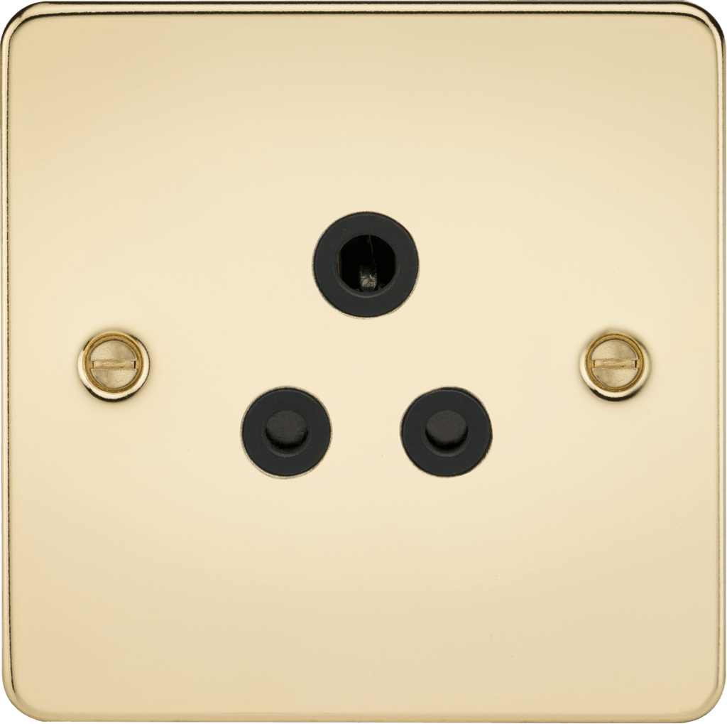 Knightsbridge MLA FP5APB Flat Plate 5A unswitched socket - polished brass with black insert