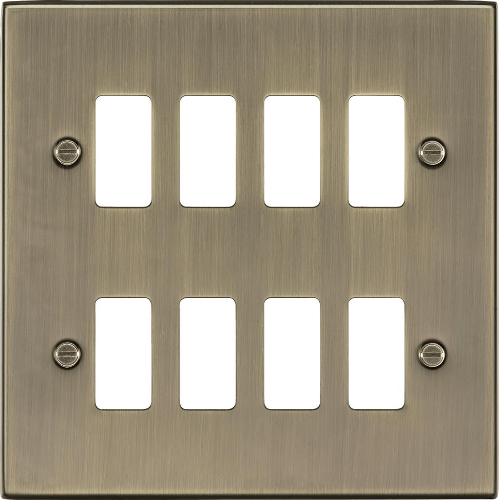 - Designed and finished to coordinate with the Square Edge Antique Brass Switches and Sockets range. 8G Square Edge Grid Faceplate - Use in conjunction with 2 x GDF002F (sold separately) FOR USE WITH KNIGHTSBRIDGE GRID SYSTEM ONLY