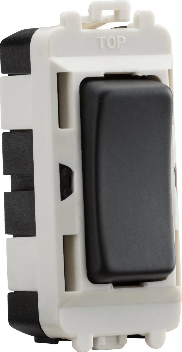 - Module simply clips into position from the front of the mounting frames (sold separately) - 20AX - 2-way - Centre off switch position (dual circuit control) - Single pole - For use with the Knightsbridge Grid system