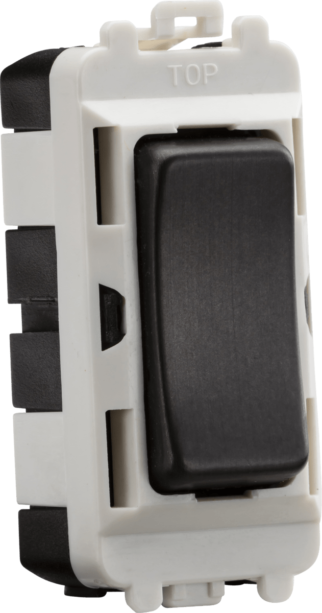 - Module simply clips into position from the front of the mounting frames (sold separately) - 20AX - 2-way - Centre off switch position (dual circuit control) - Single pole - For use with the Knightsbridge Grid system