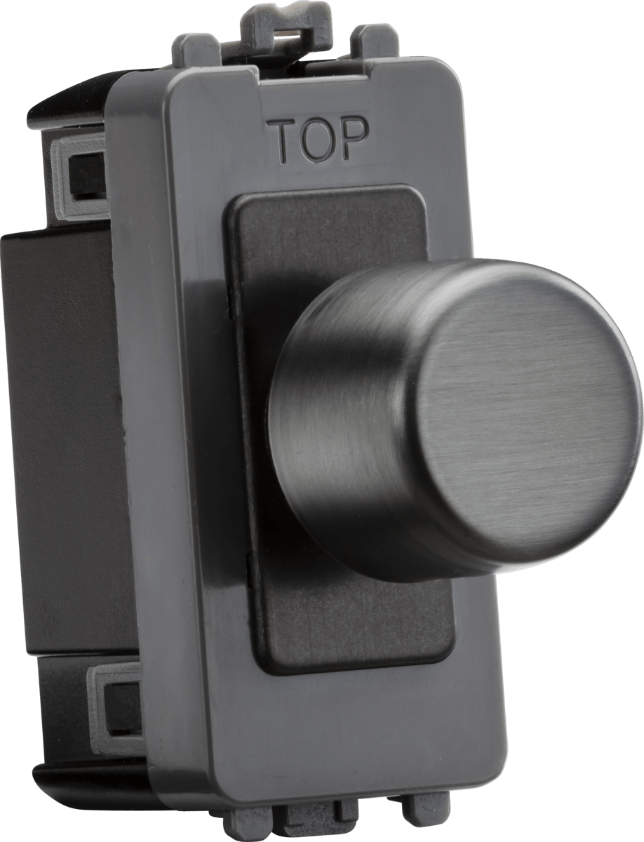 - Light switch in the outlook of a dimmer. Designed to be used on grid faceplates where you require the outlook of a dimmer but the function of just a switch. - 6A rated - 2-way - Push on/off function