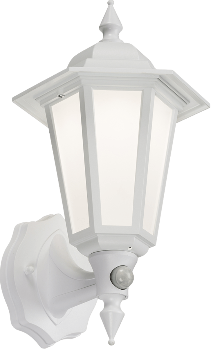 - Corrosion resilient wall lantern, constructed from durable polycarbonate material, ideal to brighten up outside space. Traditional lantern design, equipped with a photocell sensor. - Low-maintenance - Polycarbonate structure and diffuser - Photocell sensor with manual override 4000K, Cool White, 555lm