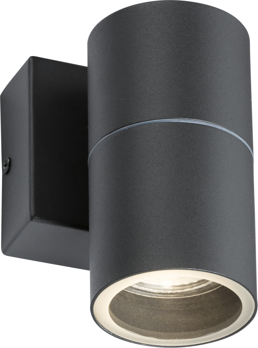- 230V IP54 fixed single wall light in powder coated anthracite finish. Ideal to brighten up outside space. Suitable for commercial and domestic use. - Stainless steel construction - Compact design - Dimmable subject to lamp 20W max. GU10 (lamp not included)