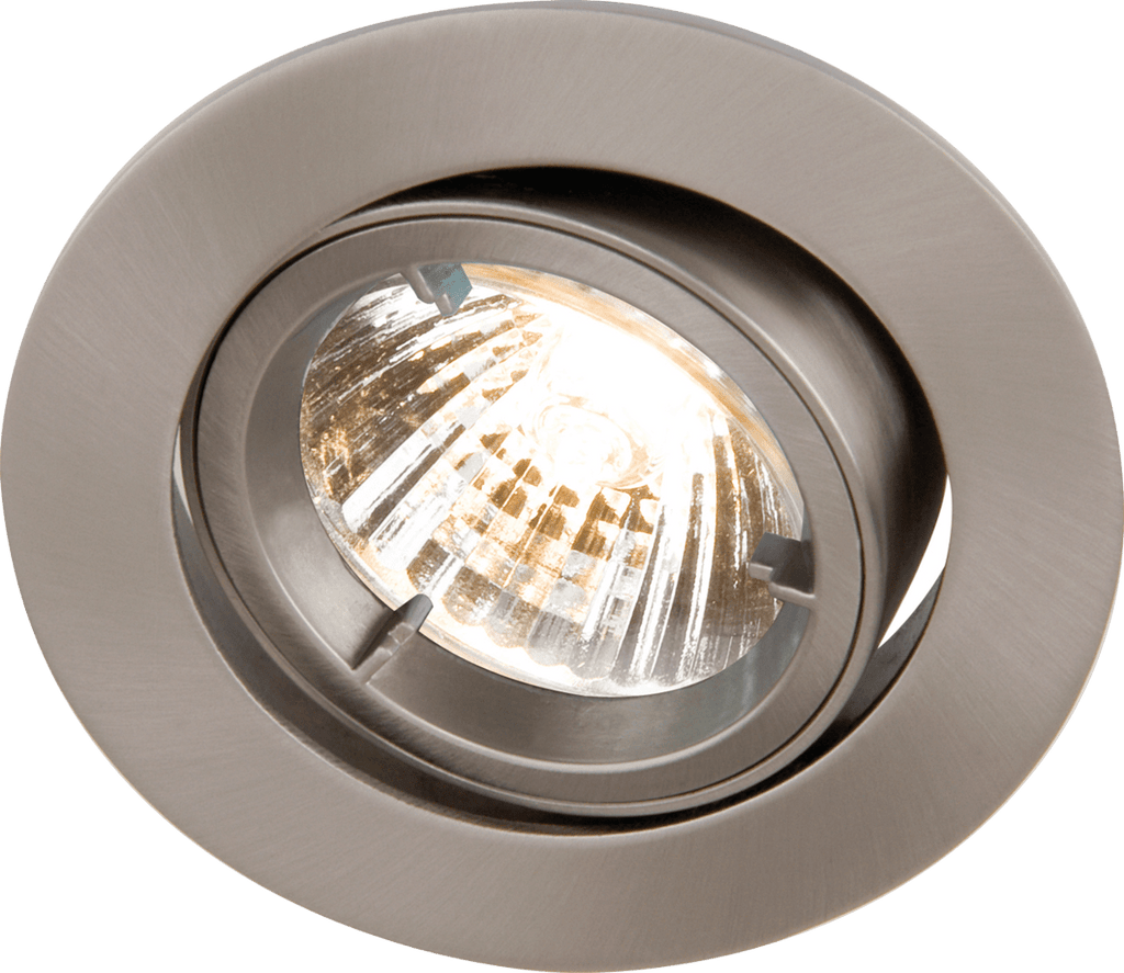 - 230V IP20 GU10 Recessed Tilt Twist & Lock Downlight, Brushed Chrome. - Die cast aluminum construction - Pre-wired with 230V GU10 lamp holder - Supplied with MR16 lamp holder - Dimmable subject to lamp *50W max. Lamp not included