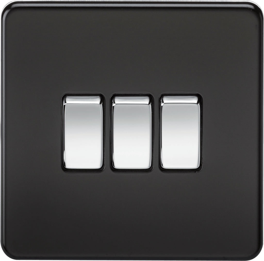 Knightsbridge MLA SF4000MB Screwless 10AX 3G 2-Way Switch - Matt Black with Chrome Rocker