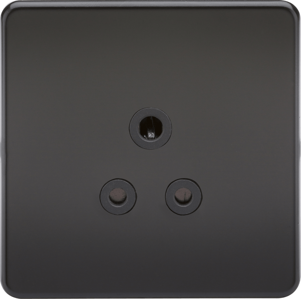 - Ideal for use in custom lighting solutions, flawless Screwless low profile metal design. - 5A round pin socket - Unswitched - Screwless low profile design with built in gasket - Certified to BS 546 - Minimum mounting box depth 25mm