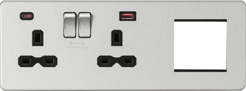 Knightsbridge MLA SFR992LBC Screwless 13A 2G DP Socket with USB Fastcharge + 2G Modular Combination Plate - Brushed Chrome