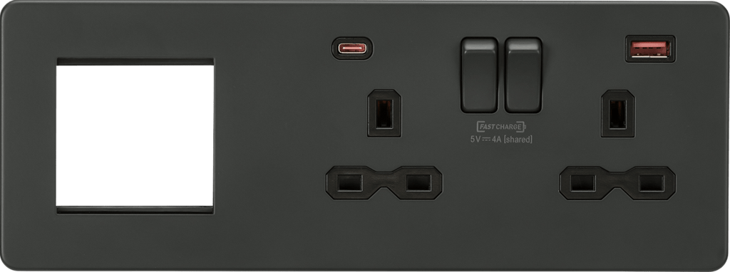 Knightsbridge MLA SFR992RAT Screwless 13A 2G DP Socket with USB Fastcharge + 2G Modular Combination Plate - Anthracite