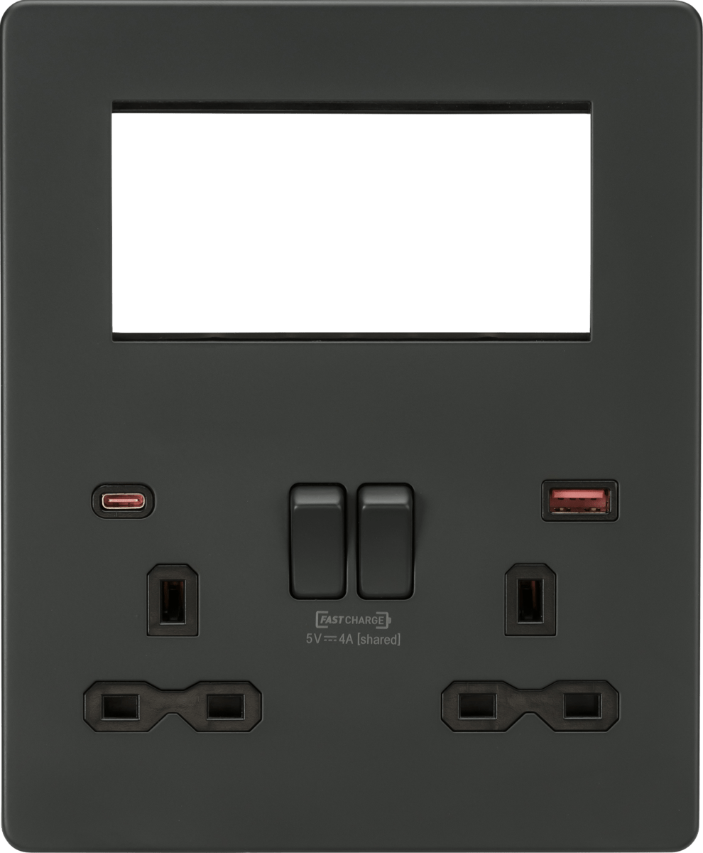 Knightsbridge MLA SFR994AT Screwless Small Multimedia Combination Plate with FASTCHARGE - Anthracite