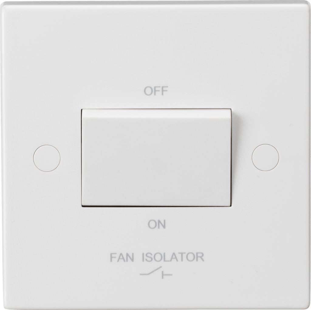 - Hard wearing, all purpose Square Edge 9mm plate with anti-microbial properties. Ideal for providing a safe and simple method of isolating fan units in en-suite bathrooms, family bathrooms, utility rooms, store rooms etc. Often the fan unit will be wired into the lighting circuit for convenience and efficiency. With this kind of installation there is often a need to leave the lighting circuit live whilst isolating the fan for maintenance - 10A - Triple pole - Rated conditional short circuit current (Inc) 1500A - Certified to EN 60669-1, EN 60669-2-4 - Includes screw cap covers - Supplied in Knightsbridge rip top polybag with euroslot