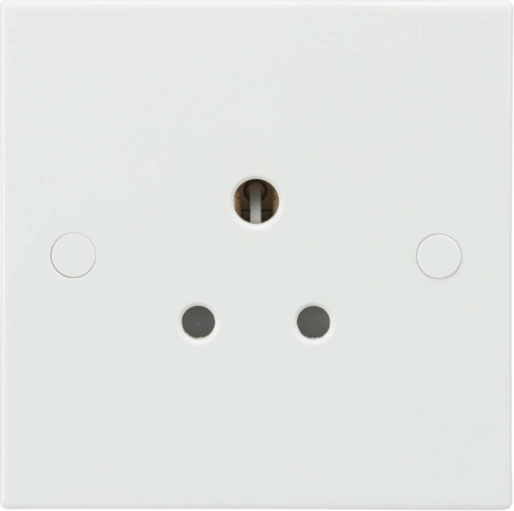 - Square edge 9mm plate with anti-microbial properties - 5A rated - Unswitched round pin socket - Includes screw cap covers - Min. Mounting box depth: 25mm - Certified to BS 546 - Packed in Individual Knightsbridge rip top polybag with euro slot