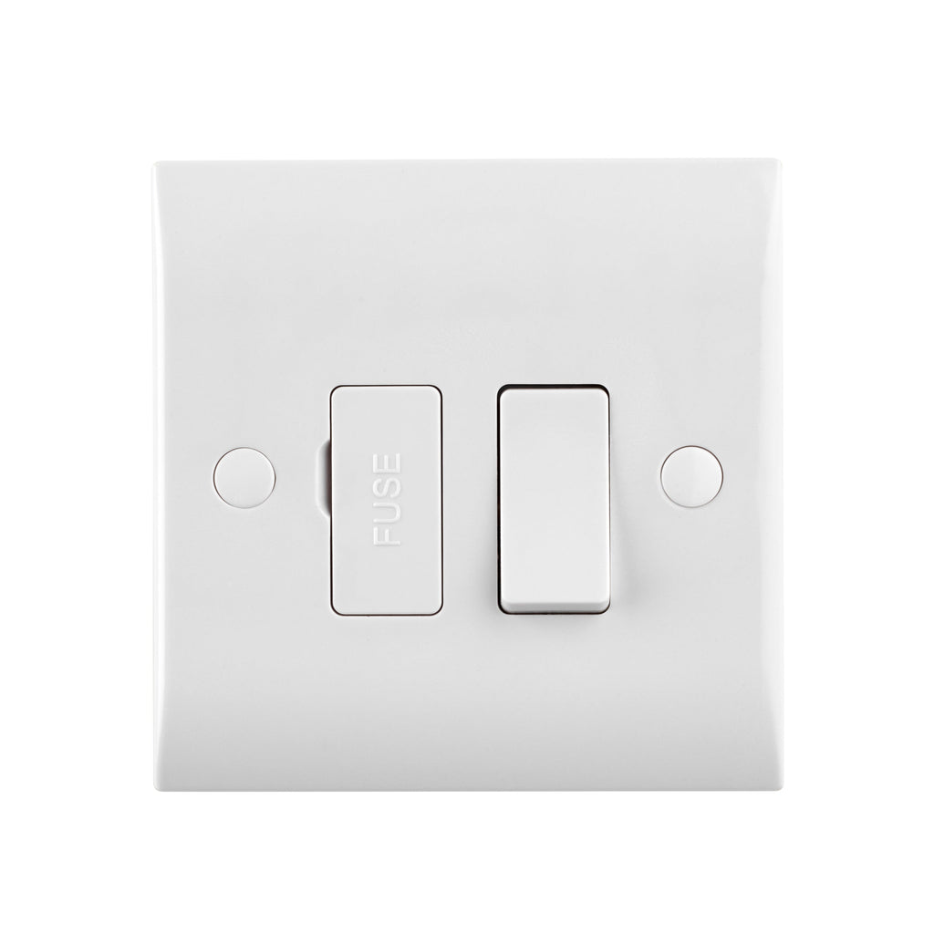 - Our 13A rated fuse spur socket boasts angled in-line terminals with captive screws which provide for quick and easy access and a hassle free installation Supplied with fixing screws & white screw covers for sleek appearance This has been manufactured using high grade thermoset Urea which effectively inhibits the growth of infectious diseases, including MRSA, E-Coli, Salmonella and Klebsiella Pneumonia bacteria We recommend a minimum mounting box depth of 25mm Certified to BS 1363-4
