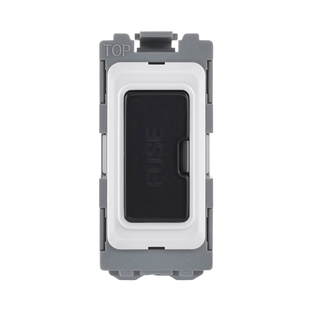 - This module is rated to 13A Embossed with "FUSE" on cover Easily clips into any Saxby Electrical grid plates with the snap lock design We recommend a minimum mounting box depth of 25mm Other colour finishes available