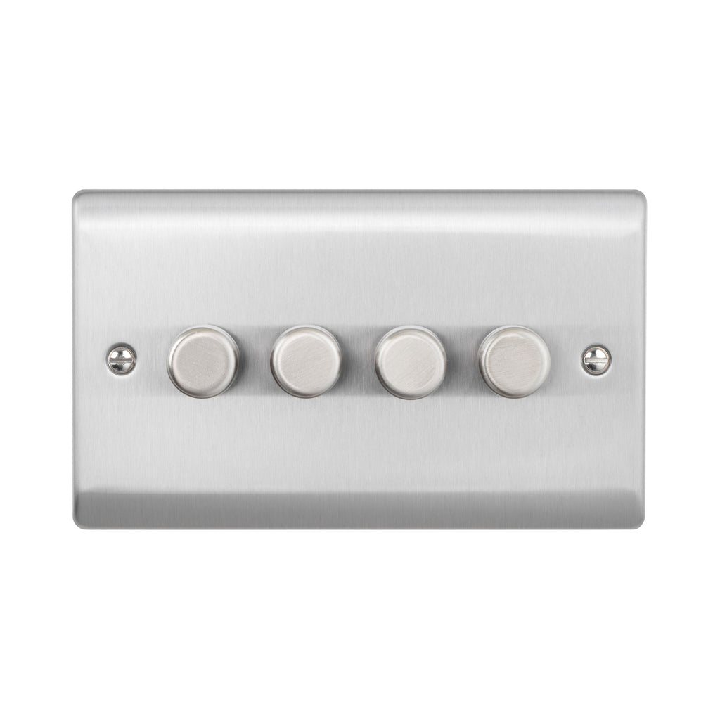 - Raised Screwed 4G LED Dimmer 5-100W - Brushed Steel