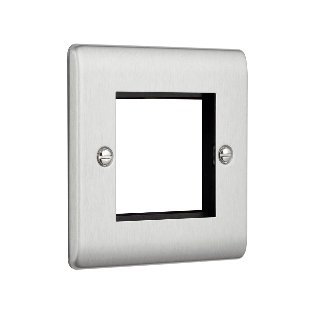 - Raised Screwed 2G Modular Faceplate (2 Modules) - Brushed Steel