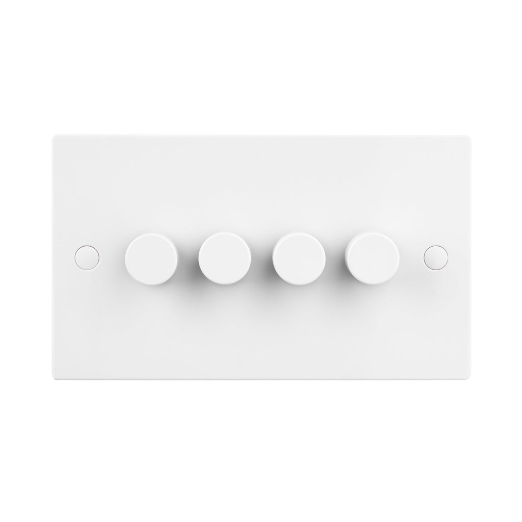 - 5-100W LED Dimmer The dimmer module we use is universal, making it the ideal choice for LED, halogen, CFL and incandescent lamps Supplied with fixing screws & white screw covers for sleek appearance 2 way push on/off with rotary control This has been manufactured using high grade thermoset Urea which effectively inhibits the growth of infectious diseases, including MRSA, E-Coli, Salmonella and Klebsiella Pneumonia bacteria We recommend a minimum mounting box depth of 25mm Certified to IEC/BS EN60669