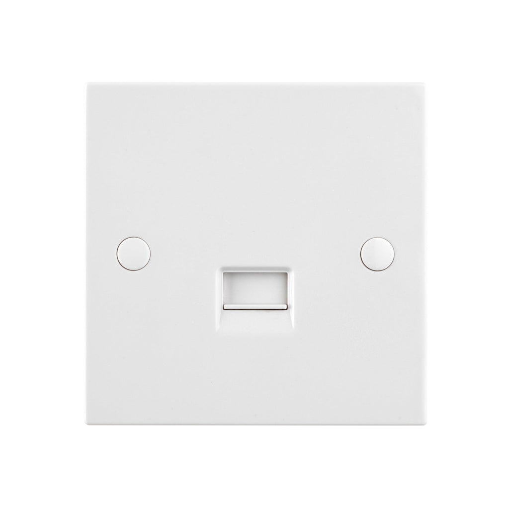 - Used for the secondary telephone Supplied with fixing screws & white screw covers for sleek appearance Shuttered socket This has been manufactured using high grade thermoset Urea which effectively inhibits the growth of infectious diseases, including MRSA, E-Coli, Salmonella and Klebsiella Pneumonia bacteria We recommend a minimum mounting box depth of 25mm Certified to BS 5733