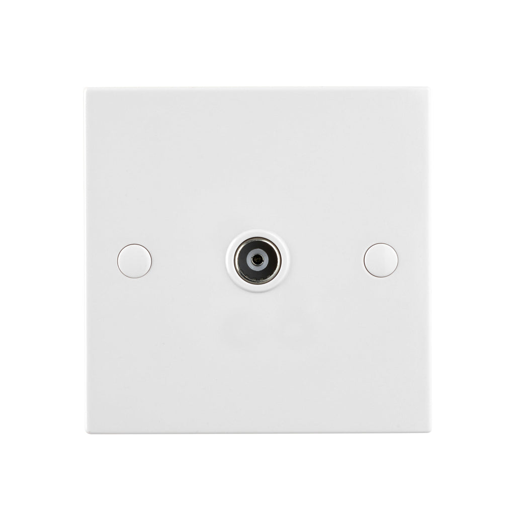 - Coax socket for TV or FM aerial connection Supplied with fixing screws & white screw covers for sleek appearance Shuttered socket This has been manufactured using high grade thermoset Urea which effectively inhibits the growth of infectious diseases, including MRSA, E-Coli, Salmonella and Klebsiella Pneumonia bacteria We recommend a minimum mounting box depth of 25mm Certified to BS 5733