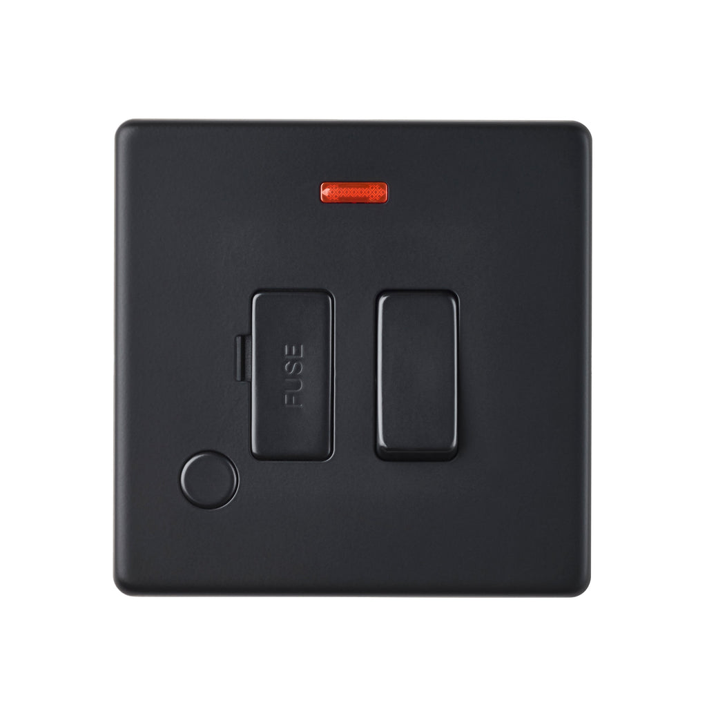 - Screwless 13A Switched Fused Spur Unit with Flex Outlet and Neon - Matt Black