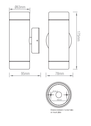- Proj: 95mm H: 175mm W: 78mm