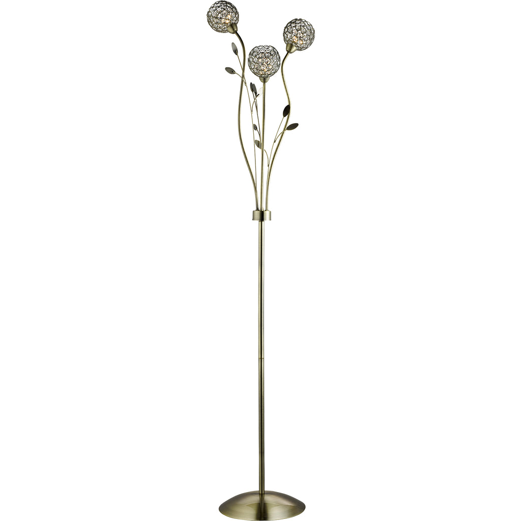 Searchlight 3573AB Bellis II 3Lt Floor Lamp - Antique Brass & Crystal Beads