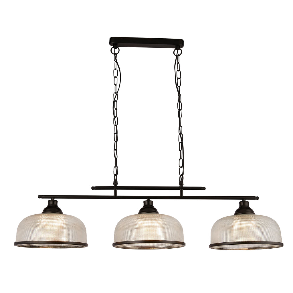 Searchlight 3593-3BK Highworth 3Lt Pendant - Black Metal & Holophane Style Glass