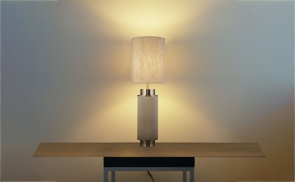 Searchlight 59041SN Flask Table Lamp - Satin Nickel, Grey Hessian & White Linen