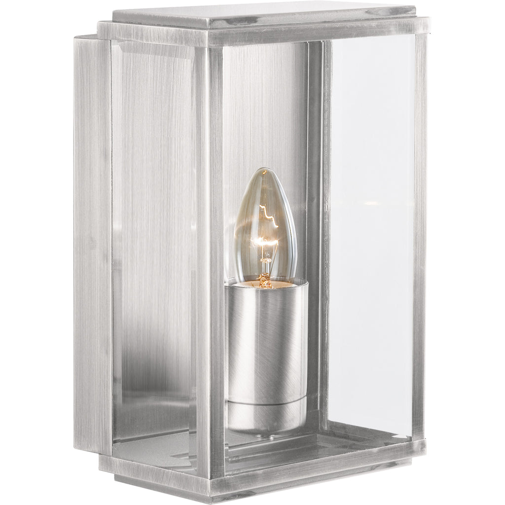Searchlight 8204SS Box Outdoor Wall Light - Satin Silver Metal & Glass