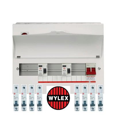 Wylex WNM1769 10-Way High Integrity Dual RCD Consumer Unit, Supplied with 8 MCBs